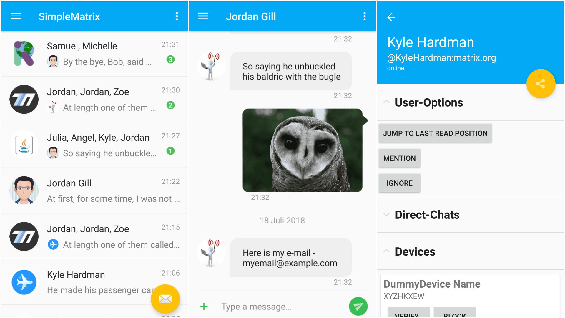Meanwhile, Matthew & Amandine have been in San Francisco for the 2018 Decentralised Web Summit - so this week's Matrix Live is live from SFO and gives a quick overview of the sort of things we got up to! Some of the sessions are already online thanks to the (somewhat unreliable) live stream (e.g. here's Muneeb (Blockstack), Amandine, Danielle (Dat), and Zooko (Zcash) talking about their respective governance models & growing pains over the last 2 years: https://youtu.be/tsz3ffrJDpw?t=12133). The summit was a massive success, with lots of discussions about decentralised reputation, UI/UX for decentralised apps, metadata-resistance, the balance of P2P versus decentralised-servers, etc. Hopefully some of the conversations we had will result in some major improvements to Matrix in the future!
