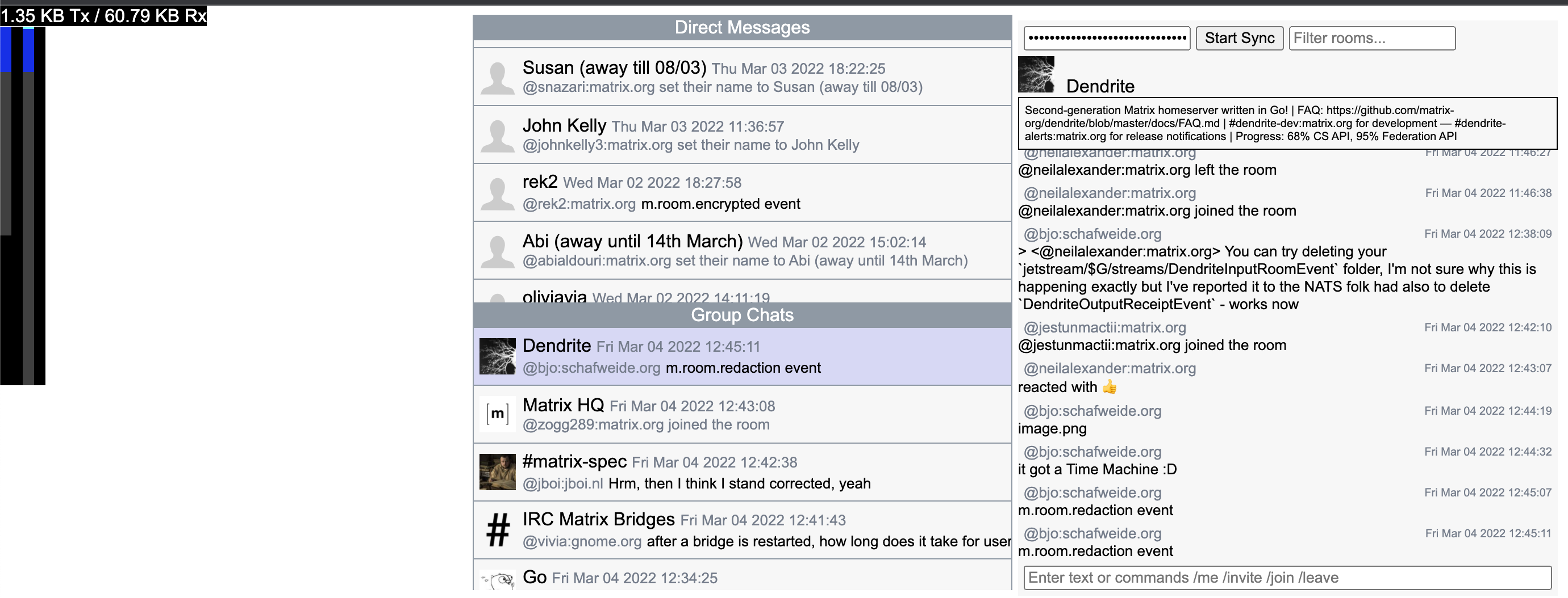 Otherwise, ongoing work from the core team continues with Sean and Rich working on faster room join performance, Olivier pushing forwards on testing Synapse with workers in Complement, while Erik has been tackling general performance work.