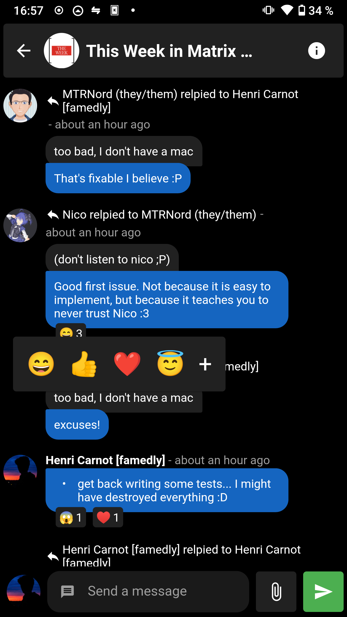 io.element.recent_emoji) was added. A new method to get the last read marker was added. Lastly, the timeline logic was enhanced, and it's now possible to load the timeline at a specific event. So you can load the room to the last event and then paginate through the new events. When reaching the last event, the timeline will automatically allow new events to be added in the timeline when received.See you next week ;)