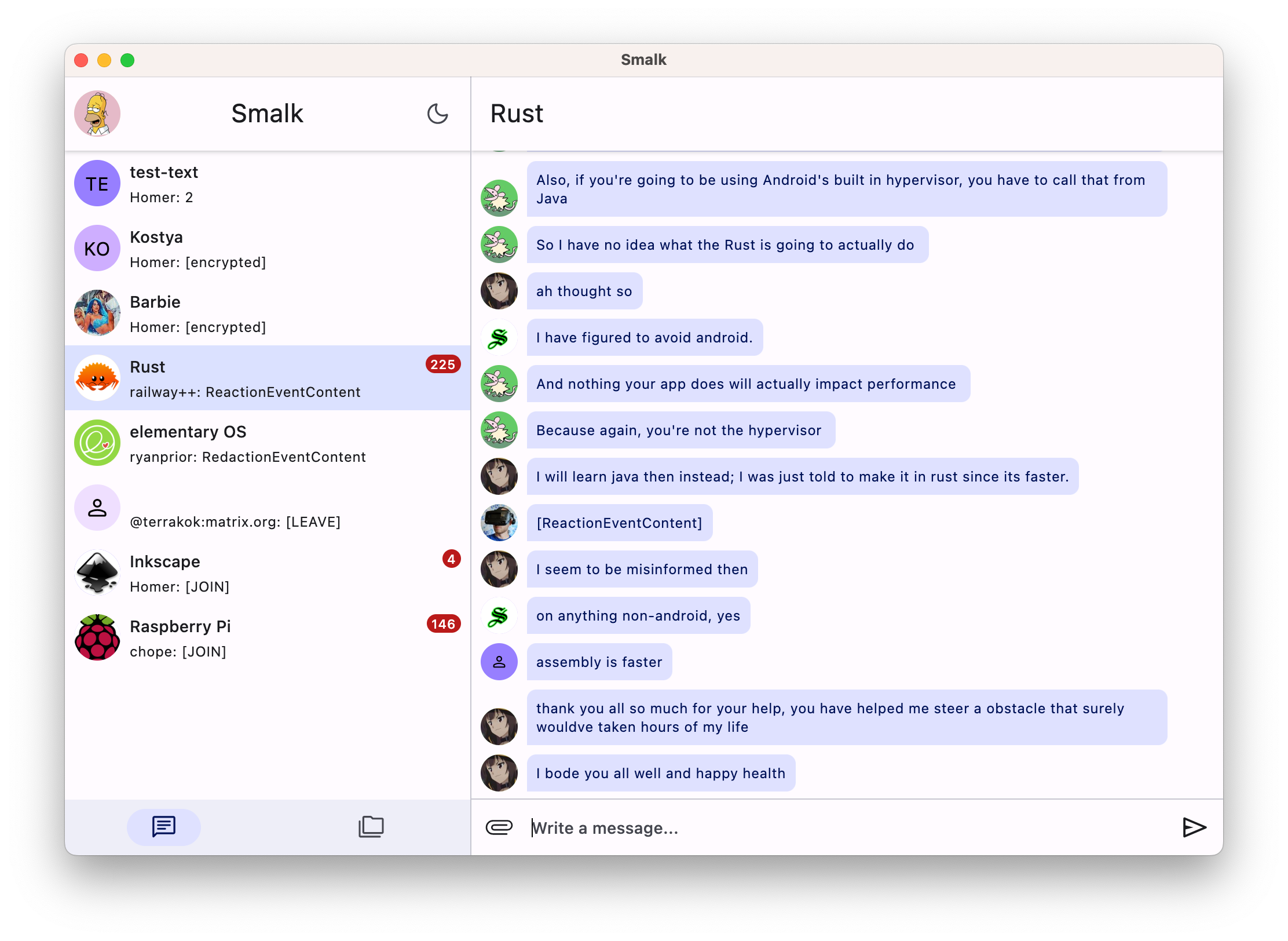 Just wanted to mention, that Konstantin Tskhovrebov created a really cool little Matrix messenger based on Trixnity. It is called smalk, uses Compose Multiplatform and already works on Desktop, Android and iOS with the same code base. Maybe web is coming soon too.