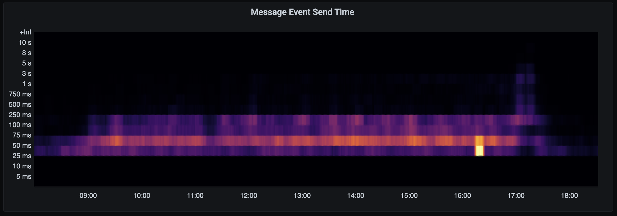 Ironically the Matrix server was largely working okay during this timeframe, given event-sending no longer passes through the main process - but the most serious impact was that the conference bot was unable to boot due to hitting a wide range of endpoints on startup as it syncs with the conference, some of which were timing out. This in turn impacted widgets, which had been hosted by the bot for convenience, meaning that the Jitsi conferences for stands and talk Q&A were unavailable (even though the Jitsi/Jibri cluster was fine). This was solved by lunchtime on Saturday: we are really sorry for folks whose Q&As or conferences got caught in this. On the plus side, we spotted that many affected rooms just added their own widgets for their own Jitsis or BBBs to continue with minimal distraction - effectively manually taking over from the bot.